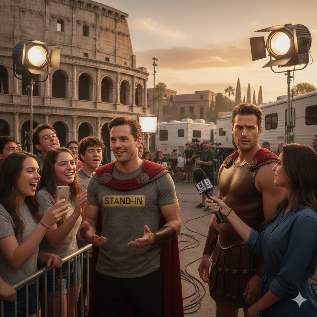 If you’ve ever stood in, you’ve probably realized how ridiculous things can get. As part of our relatively new “Comic Images from the World of Standing In” Series, here are some images (generated by Google’s Gemini to our prompts) to help capture the comedy of working as a TV/film stand-in.